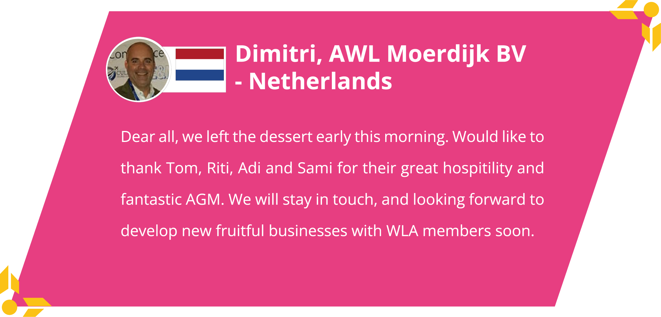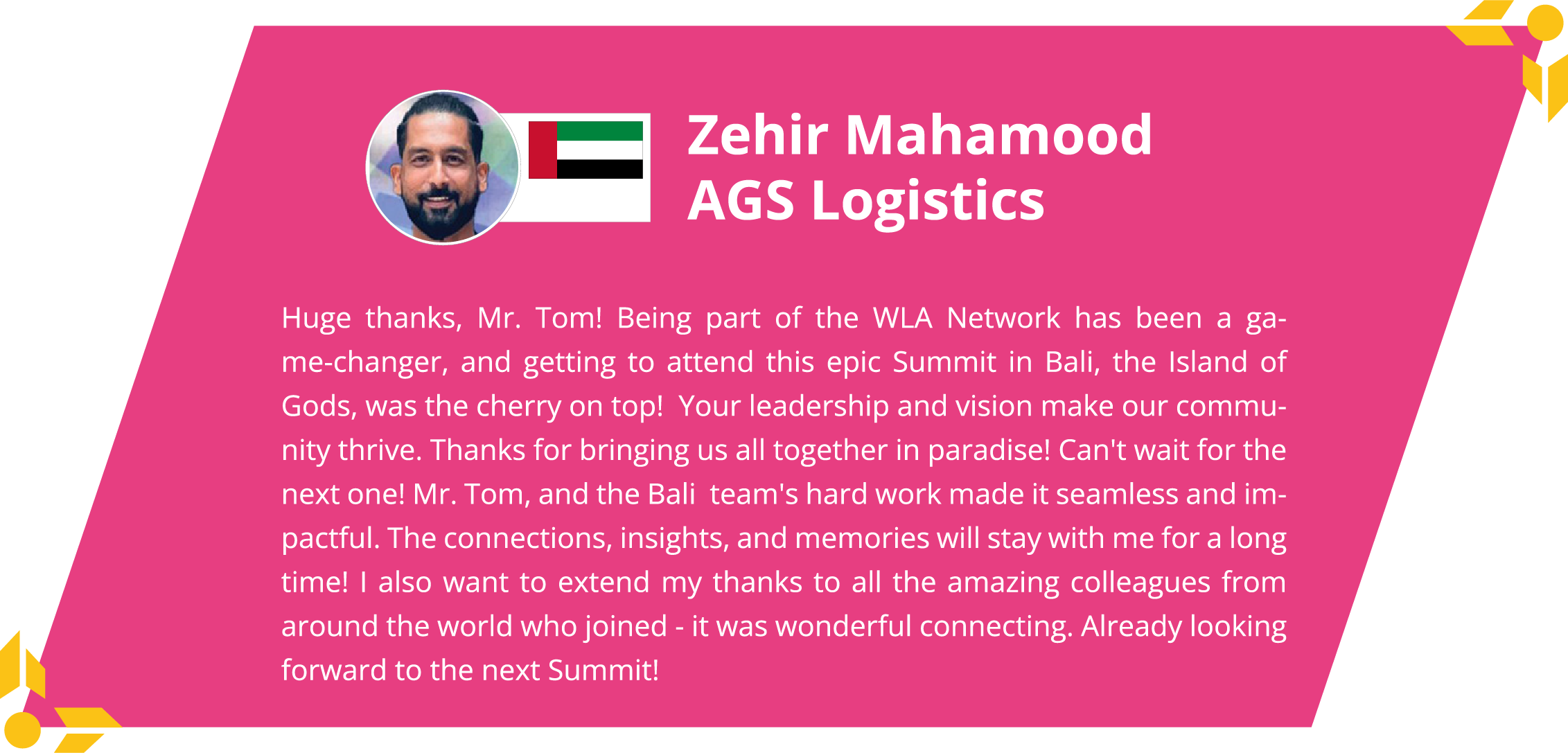 Don’t miss the opportunity to connect with global logistics leaders at the WLA Summit in Abu Dhabi. Join us for a unique blend of business, networking, and relaxation in October 2026.