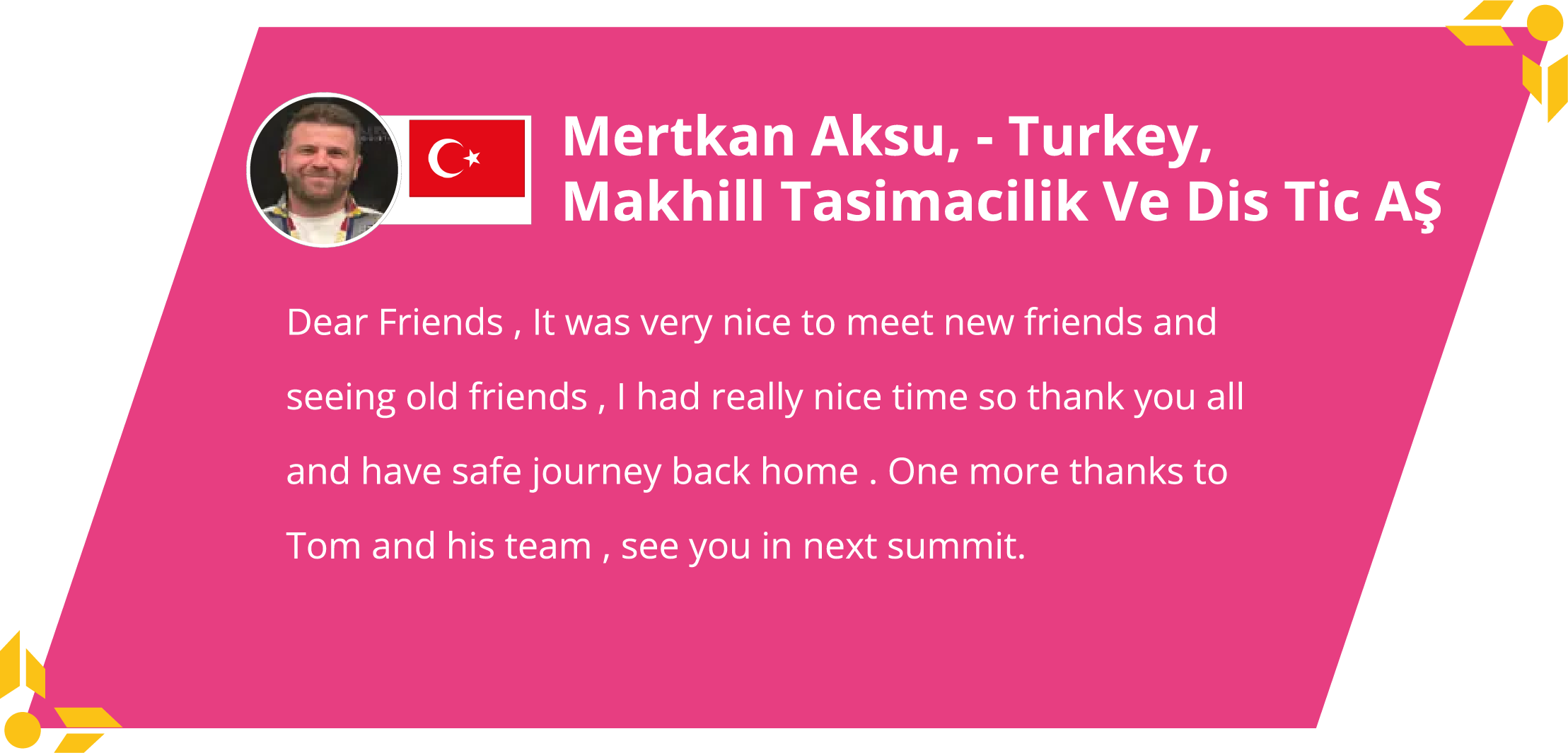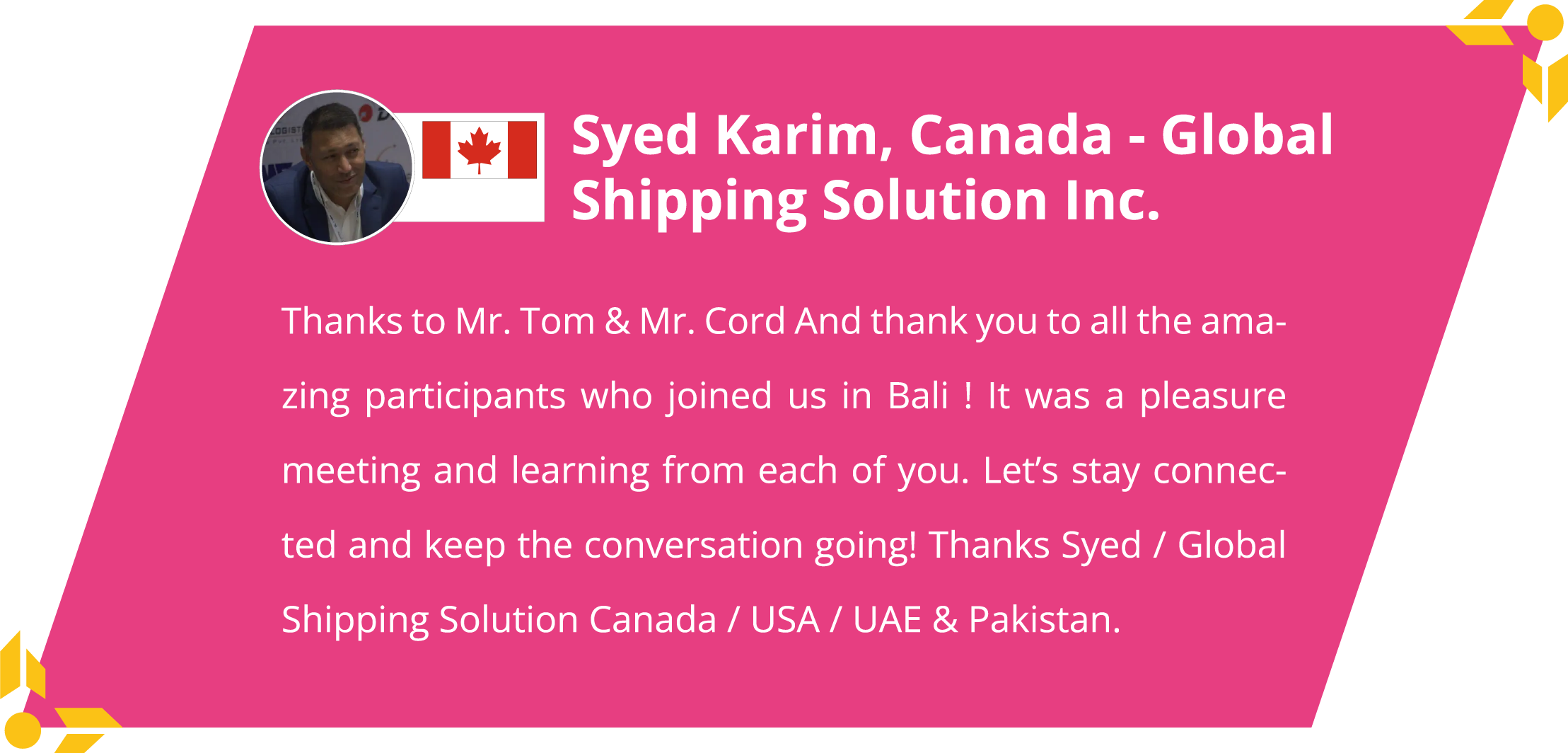 In all of our summits, we have routing orders and shipments worth millions signed between new and existing members, year after year.